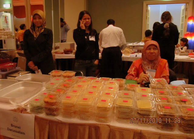 İşte tam istediğim gibi ortalık sakin yemekler bozulmamış! İlk stant Malezya'ya ait. Malezyalılar bu işi ciddiye alıyor, katıldığım diğer kermeslerde de stantları büyük ve çeşit çoktu.