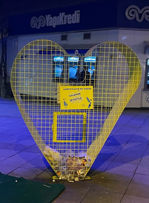 Boşuna hemen her yerde bir estetik var demiyorum. Kalp şeklinde çöp kutusuna bakın :)